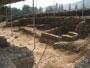 archäologische Ausgrabungsstätte von dem heutigen in der Nähe liegenden